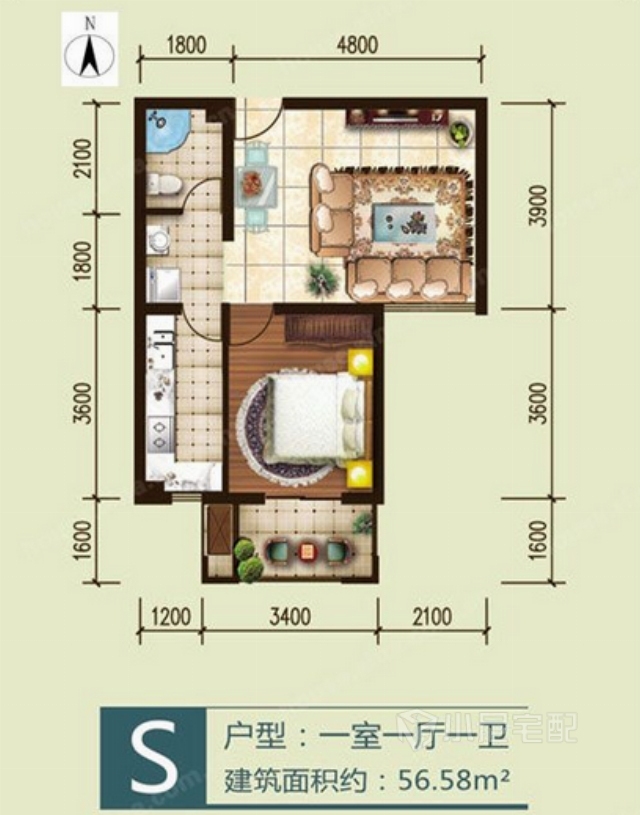 盡管這間一室公寓在表面上與其他無異,但考慮到用淺色的墻壁來擴(kuò)大視覺空間。家裝家具一體價(jià):8.8萬元