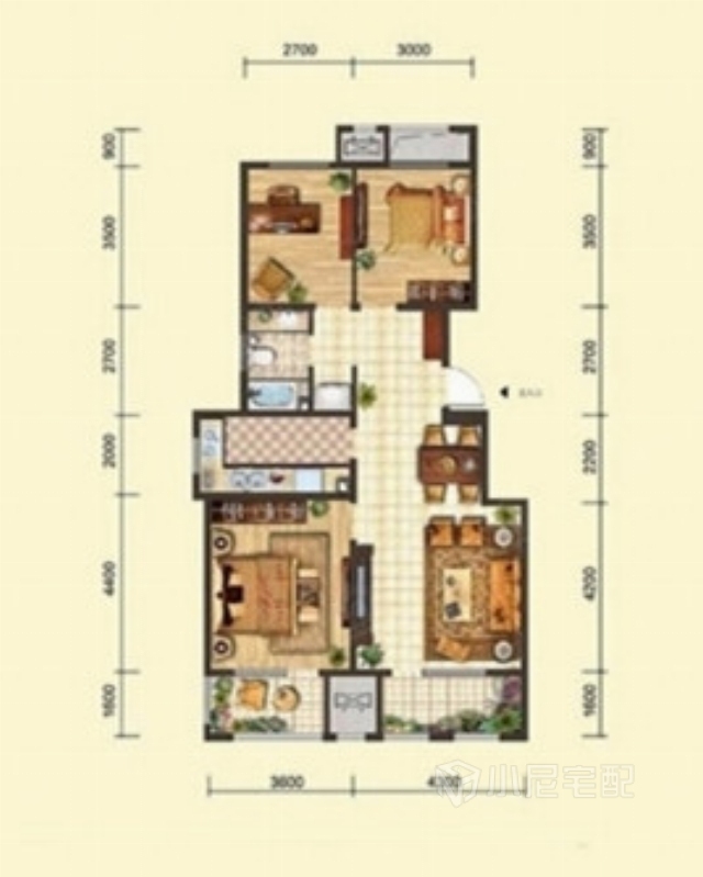 本案打造田園風(fēng)格主題就是以貼近自然,展現(xiàn)樸實(shí)生活的氣息,墻面以明媚的黃色為主色調(diào),背景墻處局部采用小尼魔畫點(diǎn)綴,搭配家具的洗白處理,創(chuàng)造處自然、簡(jiǎn)樸、高雅的氛圍。家裝家具一體價(jià):13萬。