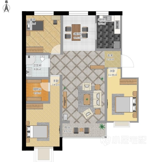 這是一間建筑面積117平的三室兩廳, 如果你不想讓家過于繁雜與奢華,但是又不愿意缺失情調(diào)和精致,那就選擇現(xiàn)代簡約風格吧。家裝家具一體價:14萬。