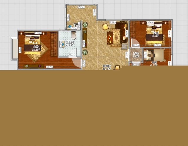 色彩應(yīng)以統(tǒng)一、和諧、淡雅為宜,對局部的原色搭配應(yīng)慎重,穩(wěn)重的色調(diào)較受歡迎,本例主要運(yùn)用到木材質(zhì),張顯簡樸大方之氣。