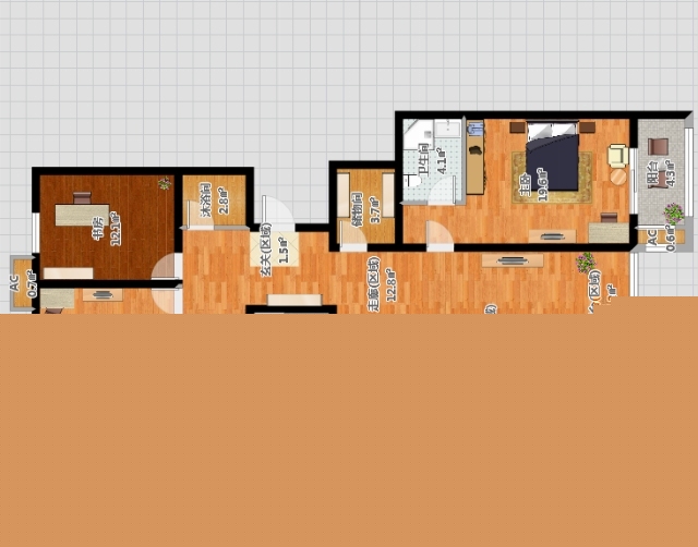鋪設(shè)淺色木地板,選用個深色家具穩(wěn)定空間。