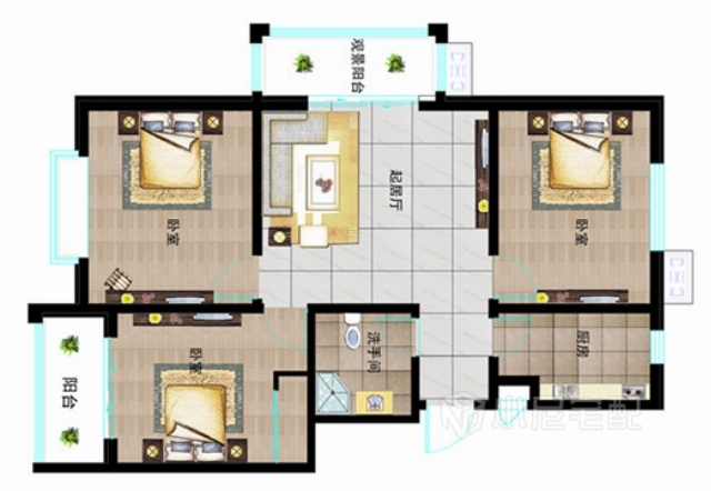 稍稍偏深一點(diǎn)的沙發(fā)背景墻,剛好用來(lái)掛放裝飾畫(huà)。