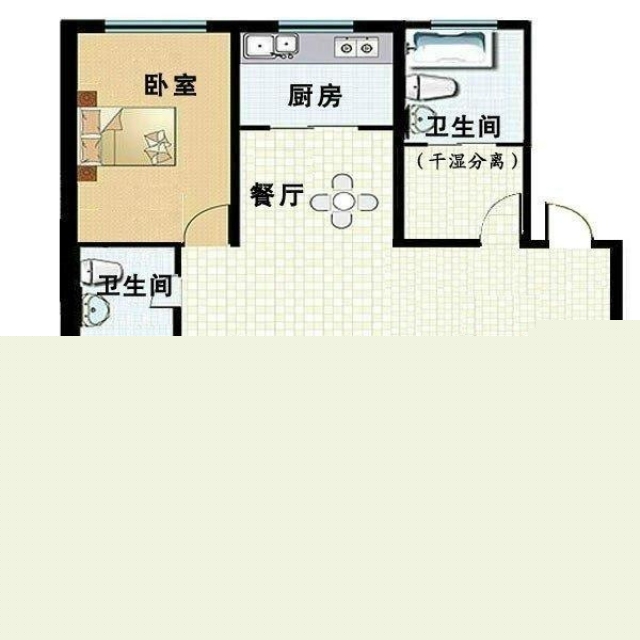 客廳鋪設(shè)淺色地磚,選用深色家具穩(wěn)定空間。