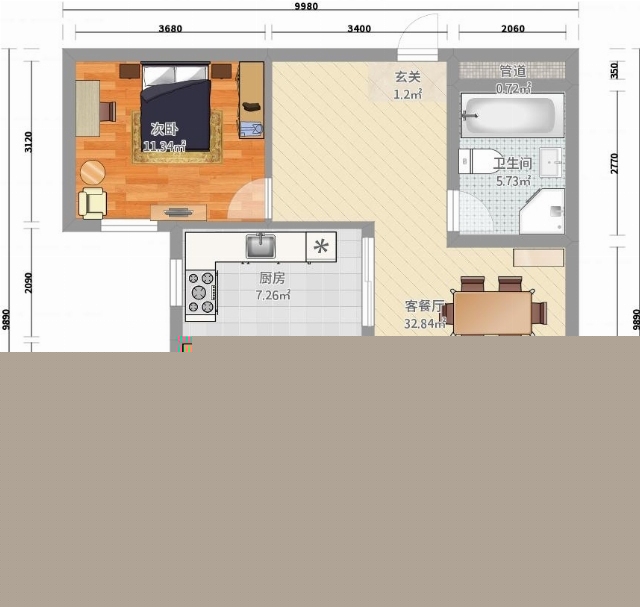 客廳和餐廳是相連的,有屏風(fēng)來(lái)搭配并不影響的