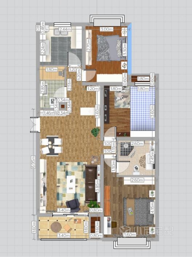 舒適的軟床,黑白花紋的窗簾,木紋壁紙裝飾的背景墻,現(xiàn)代感十足又不失溫馨。