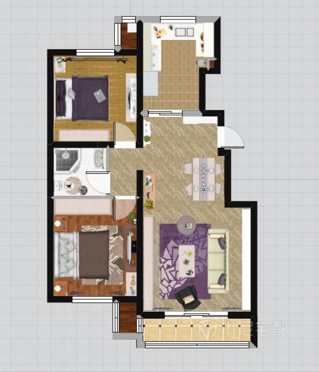 紫色的地毯加以點(diǎn)綴,增加神秘高雅的格調(diào)。