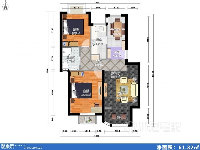 客廳和餐廳有一個(gè)隱形的劃分區(qū)域的設(shè)計(jì)