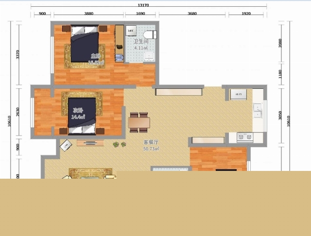 廚房暖色為主,利用集成灶更加節(jié)省空間。