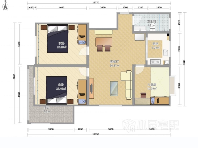 次臥室小尼宅配定制淺色衣柜,加以柔和的色調(diào)營(yíng)造出輕松愜意的氣氛,歡迎客人的到來(lái)。
