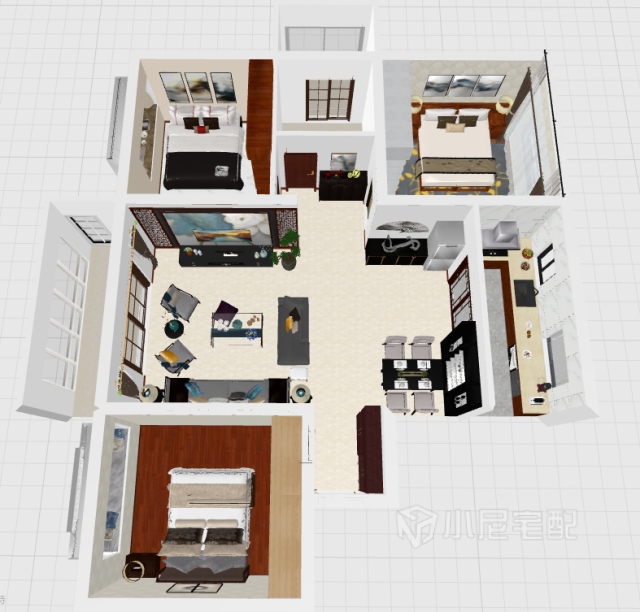 這是次臥盡量還是讓他在使用紅木色的基礎(chǔ)上亮一些。