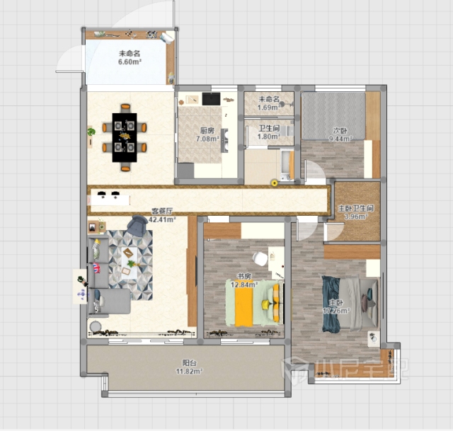 依照男主人的設(shè)想,方案簡潔大方,不做吊頂。