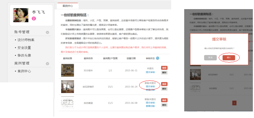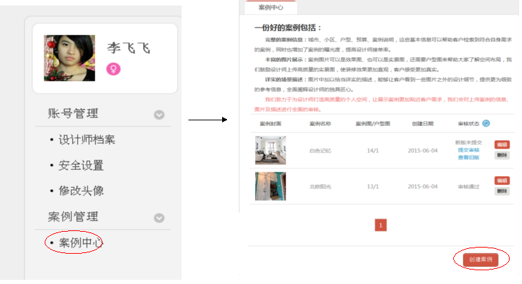 1).設(shè)計(jì)師登錄點(diǎn)擊昵稱進(jìn)入個(gè)人信息管理中心。