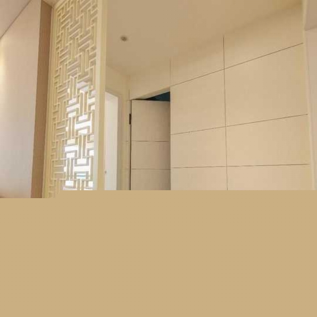 在客廳到房間的過道處做了一個有點中式的屏風作為遮擋,適當?shù)恼{節(jié)了客廳的裝飾性,也增加了臥室的隱蔽性。