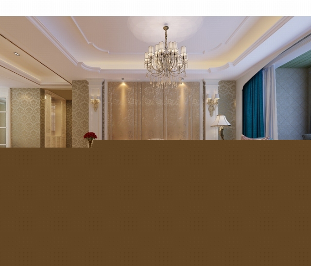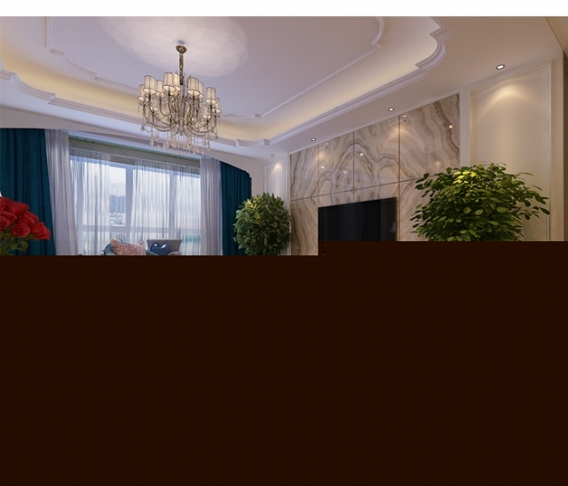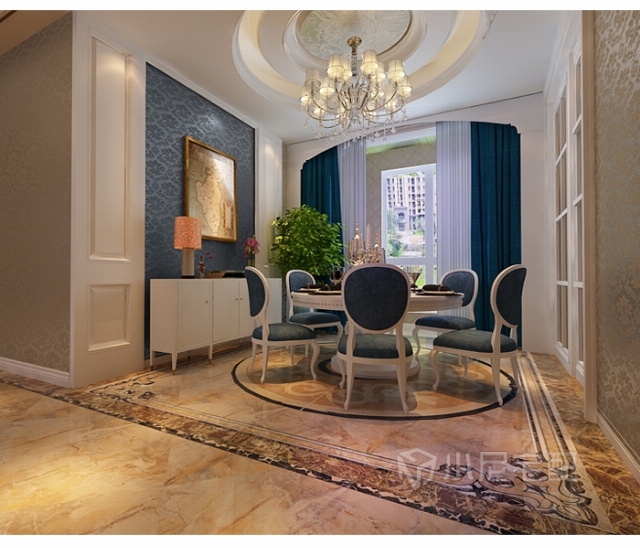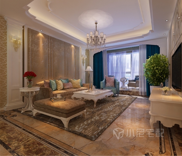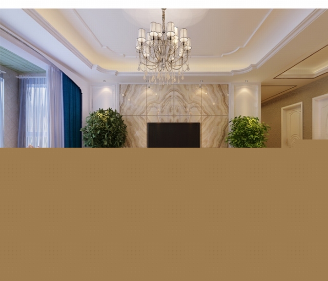 客廳藍(lán)色窗簾和水晶燈的搭配讓整體色調(diào)清爽一些。