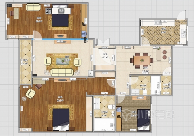 主臥室仍然用到頂?shù)囊崎T衣柜,與床和床頭柜統(tǒng)一色調(diào),彰顯低調(diào),不失大氣。