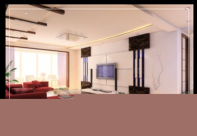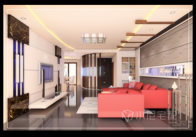 吊頂和沙發(fā)背景墻相呼應(yīng),使沙發(fā)背景墻既美觀又實(shí)用
