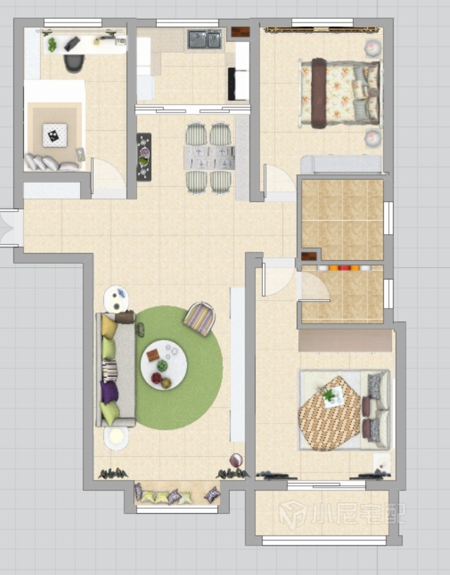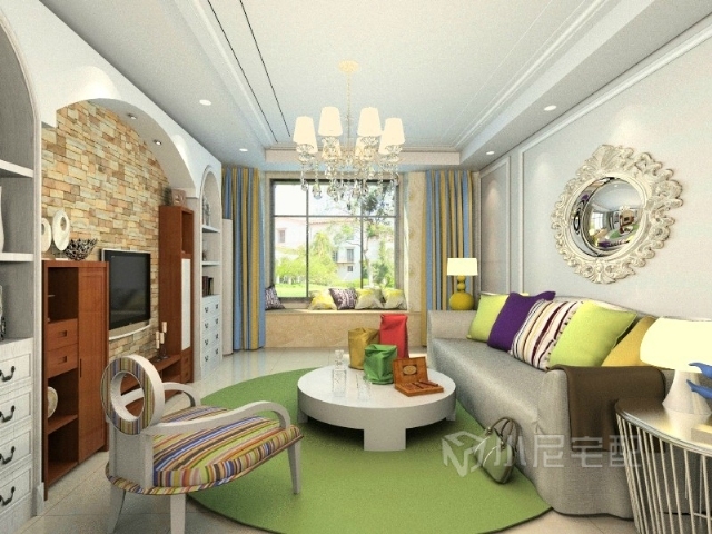 客廳采用了綠色的地毯,讓空間頓時(shí)明亮起來,小小的飄窗正好把空間充分利用了起來。