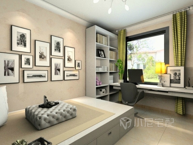 次臥簡(jiǎn)單的用石膏線圈了一圈,床頭的裝飾取代了平日里掛幅畫的習(xí)慣。