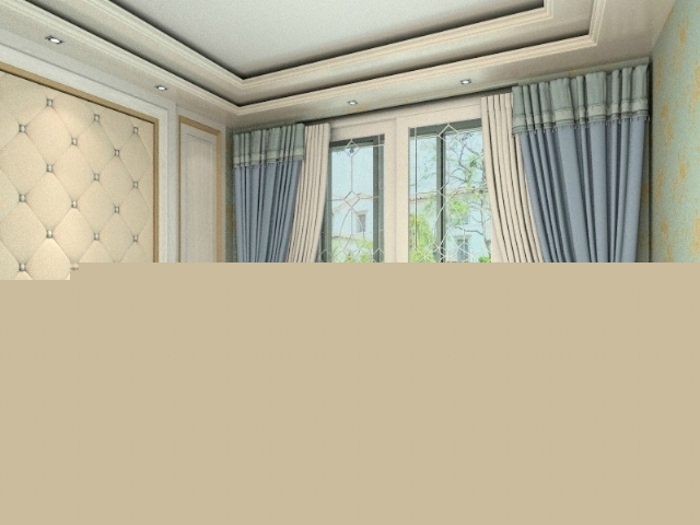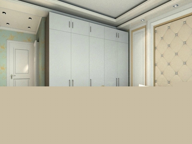 主臥用軟包做了個(gè)床頭背景,簡(jiǎn)單的吊頂,小田園式的壁紙。