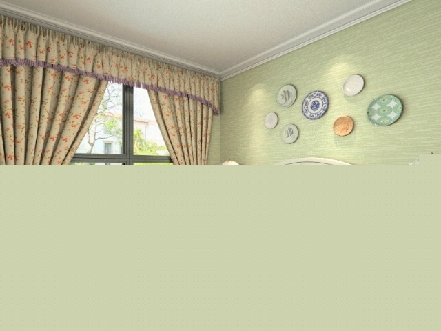 主體綠色的壁紙搭配淺藍(lán)色的窗簾,有沒有種小清新的感覺?