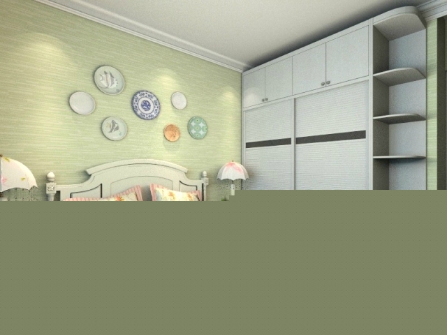 空間采用了淺綠色的壁紙搭配白色的轉(zhuǎn)角柜,使空間頓時(shí)明亮起來。