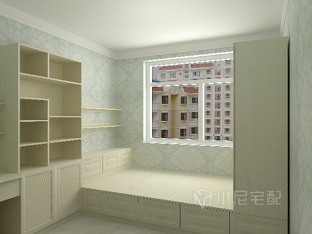 淺藍(lán)色壁紙,搭配小尼米黃塔塔米,會讓孩子溫暖快樂度過每一天。