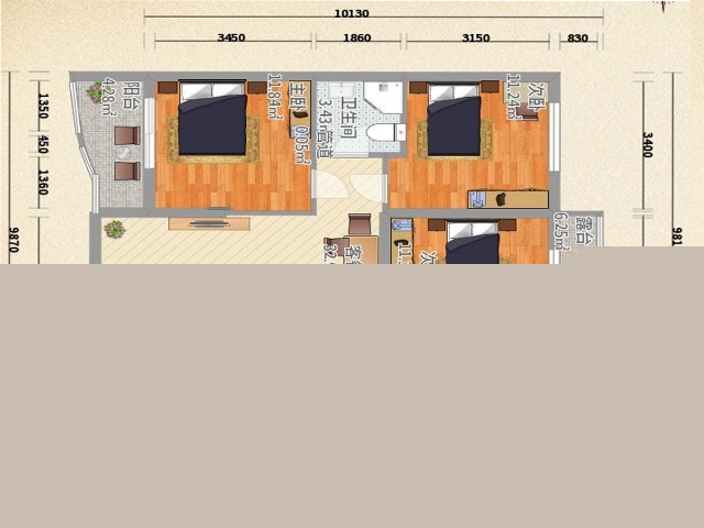次臥同樣是軟膜天花,單相對偏暖,更適合女孩居住