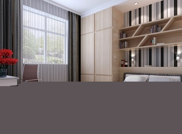 次臥室床、床頭書架及衣柜巧妙設(shè)計,充分利用空間,集書房臥室為一體。