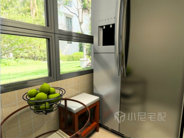 廚房外面就是陽(yáng)臺(tái),買菜的時(shí)候在這里摘菜,需要的都在冰箱里,看看外面人來人往