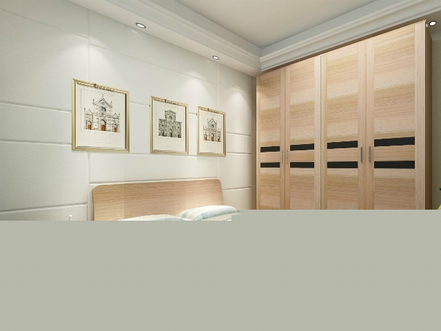 白色的簡(jiǎn)約的背景墻,搭配現(xiàn)代裝飾畫(huà),金絲胡桃的家具增加了臥室的溫馨。