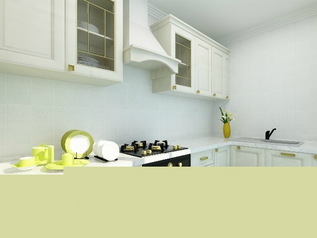 乳白的櫥柜組合,白色的臺面,功能齊全又安靜整潔。