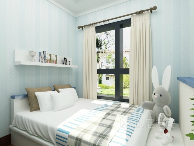 淡淡的藍色的背景墻與白色簡潔的電視柜搭配,清新柔和。