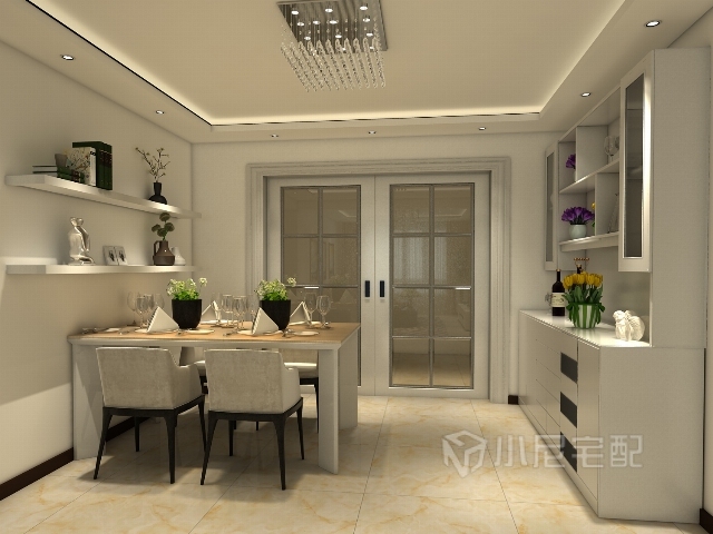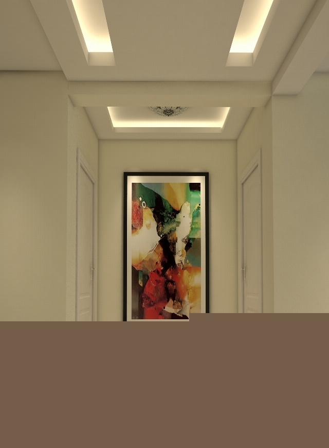 走廊的吊頂采用兩邊的燈槽設(shè)計(jì),使餐廳和客廳更有連接性.