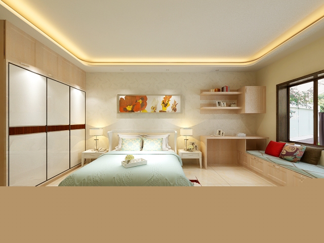 臥室使用秋雨梧桐系列,頂柜增加了初五的空間 ,轉(zhuǎn)角更加美觀.
