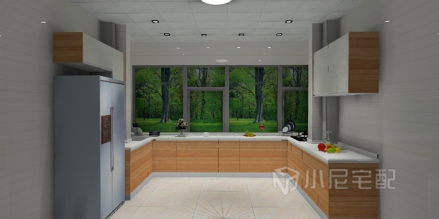 u型的廚房設(shè)計(jì),更大的操控空間和儲(chǔ)物空間,顏色比較鮮明