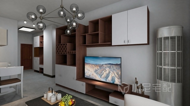 電視背景墻和酒柜連在一起,合理使用的一面墻的空間