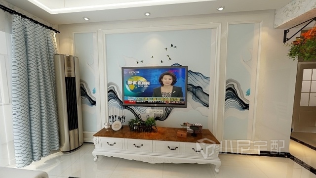 客廳電視墻簡潔大方 給人的感覺淡雅干凈