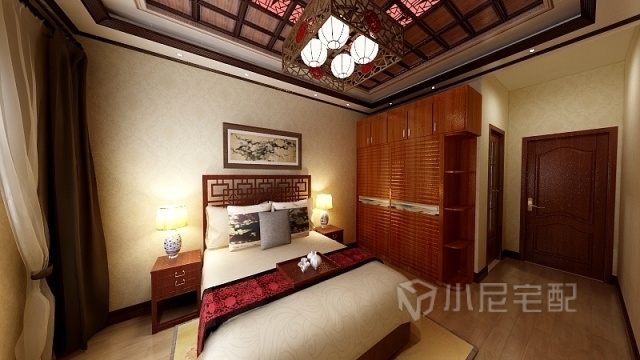 主臥室采用一個新中式風格 沉著穩(wěn)重
