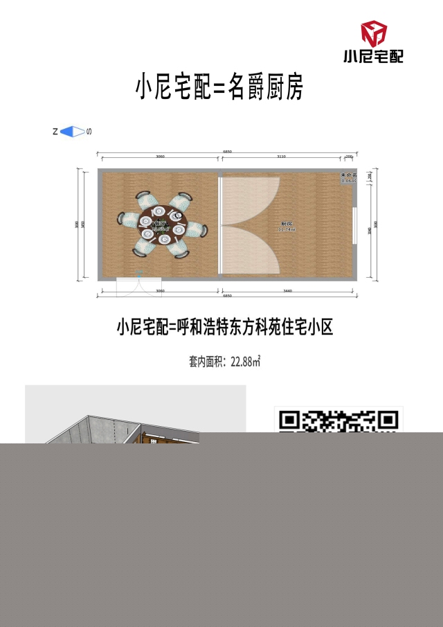 U型廚房布置,活動(dòng)空間充足,三角動(dòng)線明確