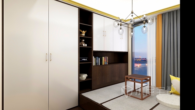 方寸之間,唯心如一 臥室定制了榻榻米代替次臥的床,并用定制大衣柜將這個(gè)空間的儲(chǔ)物功能充分開發(fā)。既能做儲(chǔ)物空間,平時(shí)沒(méi)有客人時(shí)這里又能作為家里的小茶室使用。